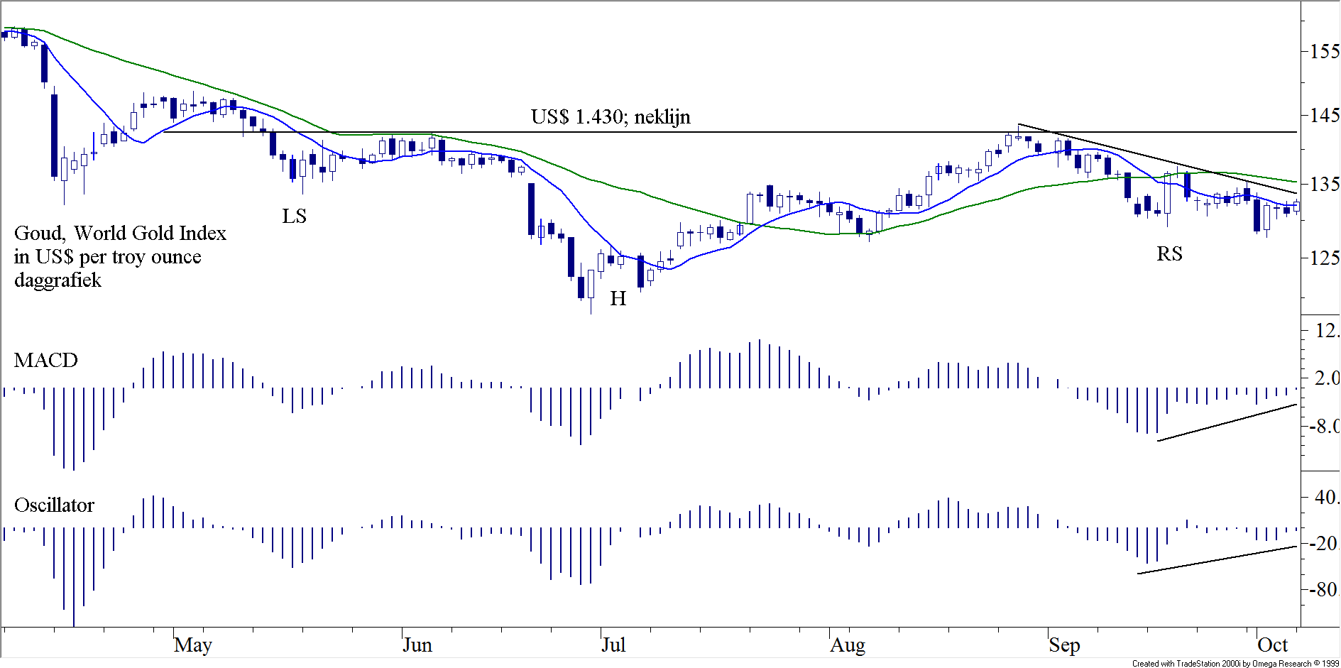 Voor beleggers in de edele metalen zal het beeld dat de daggrafiek van de World Gold Index in figuur 7 oproept opgewekte