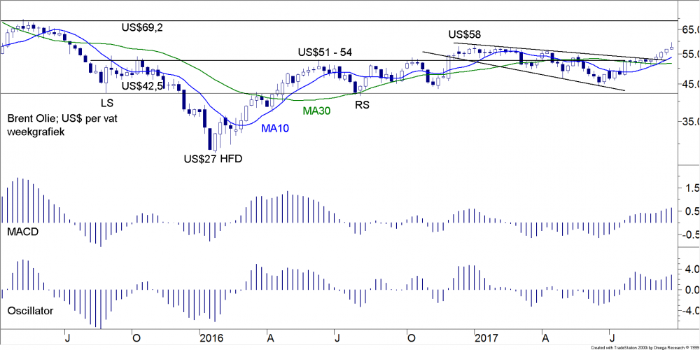 Copyright Vladeracken, US$69,2 per vat. Wij gaan er vanuit dat dit punt nog in 2017 bereikt gaat worden. Of Koninklijke Olie daarvan zal profiteren hangt af van de ontwikkeling van de koers van de $.